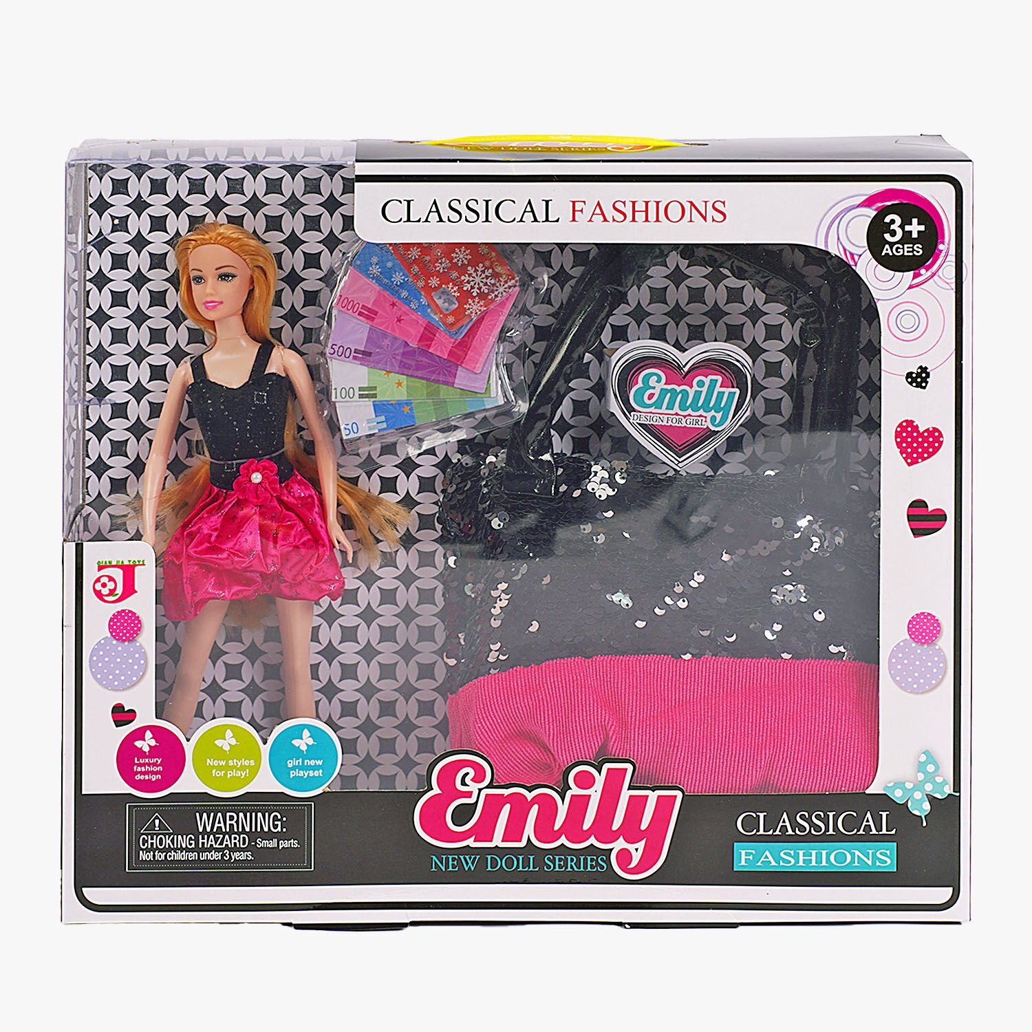 Кукла Emily, высота 30 см, съемная обувь, муляжи денег, сумочка. Multicolor (152485)