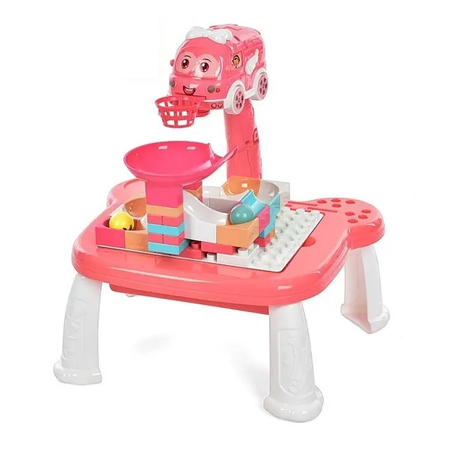 Детский столик с проектором Block Table, фломастеры, конструктор, альбом. Розовый (156046)