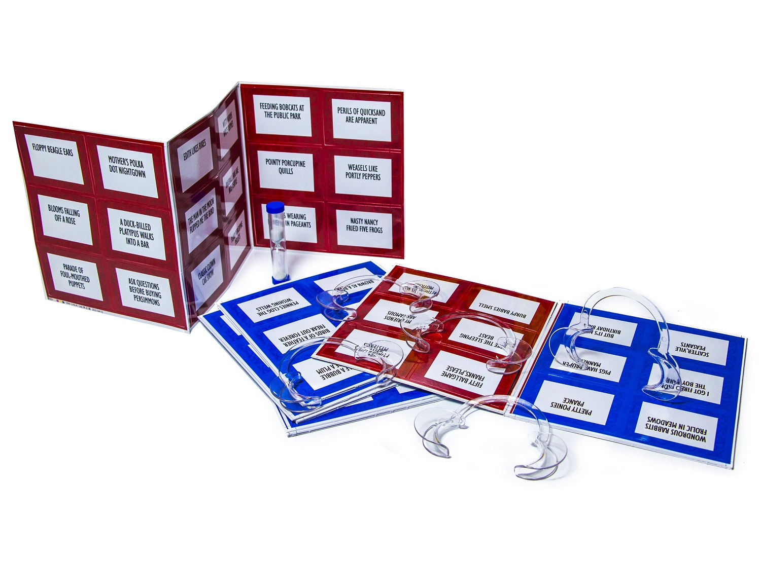 После игры для компании «Шире рот» на приеме у стоматолога вы будете все время смеяться и вспоминать последнюю забавную вечеринку. Ведь в этой оригинальной настольной игре на английском языке стоматологические роторасширители используются не совсем по назначению. Вам предстоит вставить один из загубников в рот и прочесть своей команде в минуту как можно больше фраз с карточек. Желательно, чтобы при этом вас поняли, за это ведь начисляются победные очки. Но получить их будет, поверьте, ух как не просто. На карточках вас ждут совершенно разные фразы на английском языке, и вроде бы в тексте нет ничего сложного. Но представьте, что его нужно произнести с разъединенными и зафиксированными губами. Лучше, конечно, не представлять, а убедиться в этом самостоятельно вместе с игрой «Шире рот» на ближайших посиделках с друзьями.