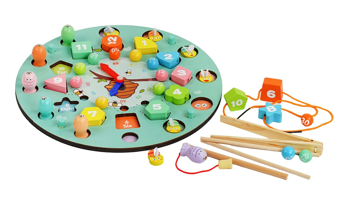 Часы логические Hai Bao Er, магнитная рыбалка, сортер, гра-шнуровка. Разноцветный (128080)