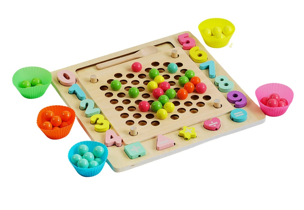 - состоит из деревянной игровой панели, дополнительного основания с отверстиями и разными аксессуарами;