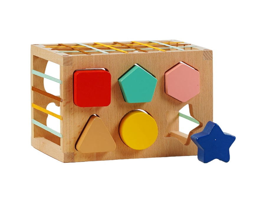 Логические игры – это всегда полезные игрушки для малышей, они улучшают память, концентрацию внимания, тренируют воображение, логическое и креативное мышление. А с такой игрой малышу точно никогда не станет скучно, ведь у нее есть 3 варианта игры — каждая грань параллелепипеда имеет какой-то интересный. С одной стороны ребенок найдет геометрический сортер, к окошку которого нужно будет подбирать соответствующие деревянные фигурки, а с другой – нужно отсортировать веселых деревянных животных. А другие грани созданы из эластичных лент, натянутых между собой в виде красочной сетки или решетки. Поэтому чтобы достать деревянные фигурки, нужно просто продвинуть руку и ленты не будут мешать, но не позволят фигуркам самостоятельно выпасть.