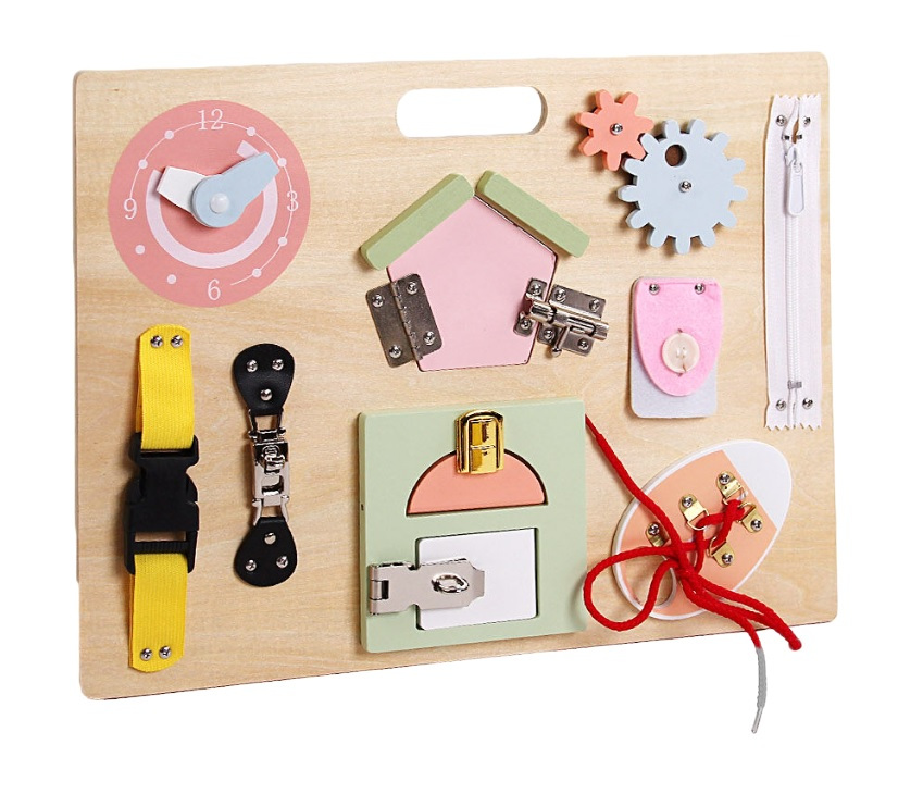 Бизиборд – это интересная игровая панель, на которой закреплены разнообразные детальки, помогающие малышу знакомиться с внешним миром и с теми вещами, которые часто встречаются в обиходе. Такая игрушка способна увлечь надолго и подарить много веселых и интересных часов вместе, а еще она невероятно полезна – ведь это один из самых лучших способов развивать мелкую моторику ребенка.