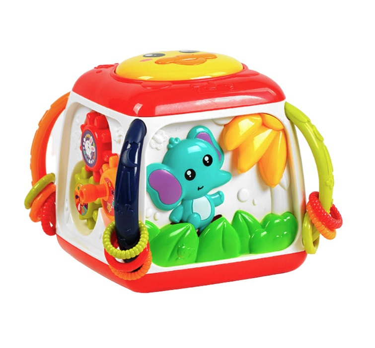 Теперь устроить музыкальное веселье можно прямо у себя дома! Такой яркий кубик имеет разные увлекательные игры на каждой своей грани, благодаря которым ребенок разовьет моторику рук, изучит цифры и послушает мелодии и сказки. Каждую игру будет сопровождать веселое животное, которое будет только рада поиграть с малышом и поделиться своими историями. Здесь ребенок поиграется в разные пальчиковые игры, покрутит шестерни, сосчитает зубы акулы и послушает морских жителей, ведь у них накопилось столько интересных историй и веселых песен!