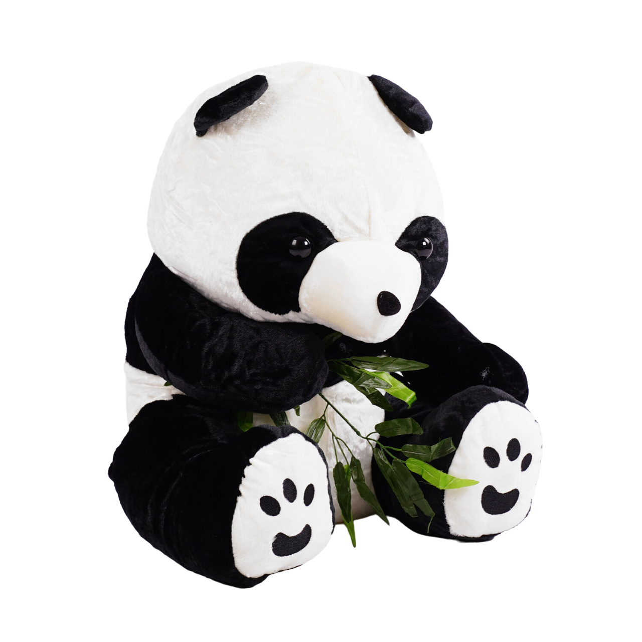 Черно-белая панда только что слезла с бамбука и еще не успела дожевать самый зеленый листик, который самый вкусный, но уже готова играть в веселые игрушки и наполнять комнату смехом и уютом. С такой игрушкой легко придумать новые сюжеты для игр или просто использовать ее как подушку, ведь размер животного это позволяет.