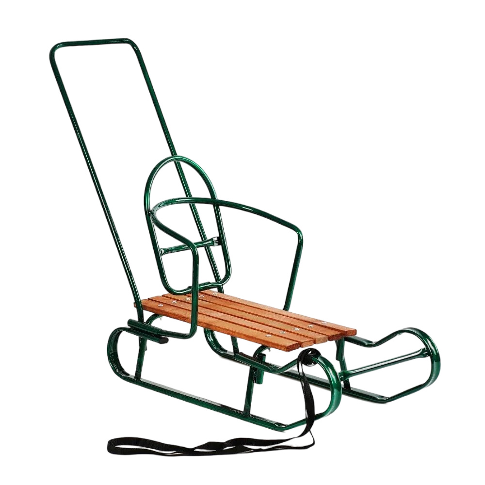 Санки Королевские, плоские полозья, с ручкой. Зеленый (143653)