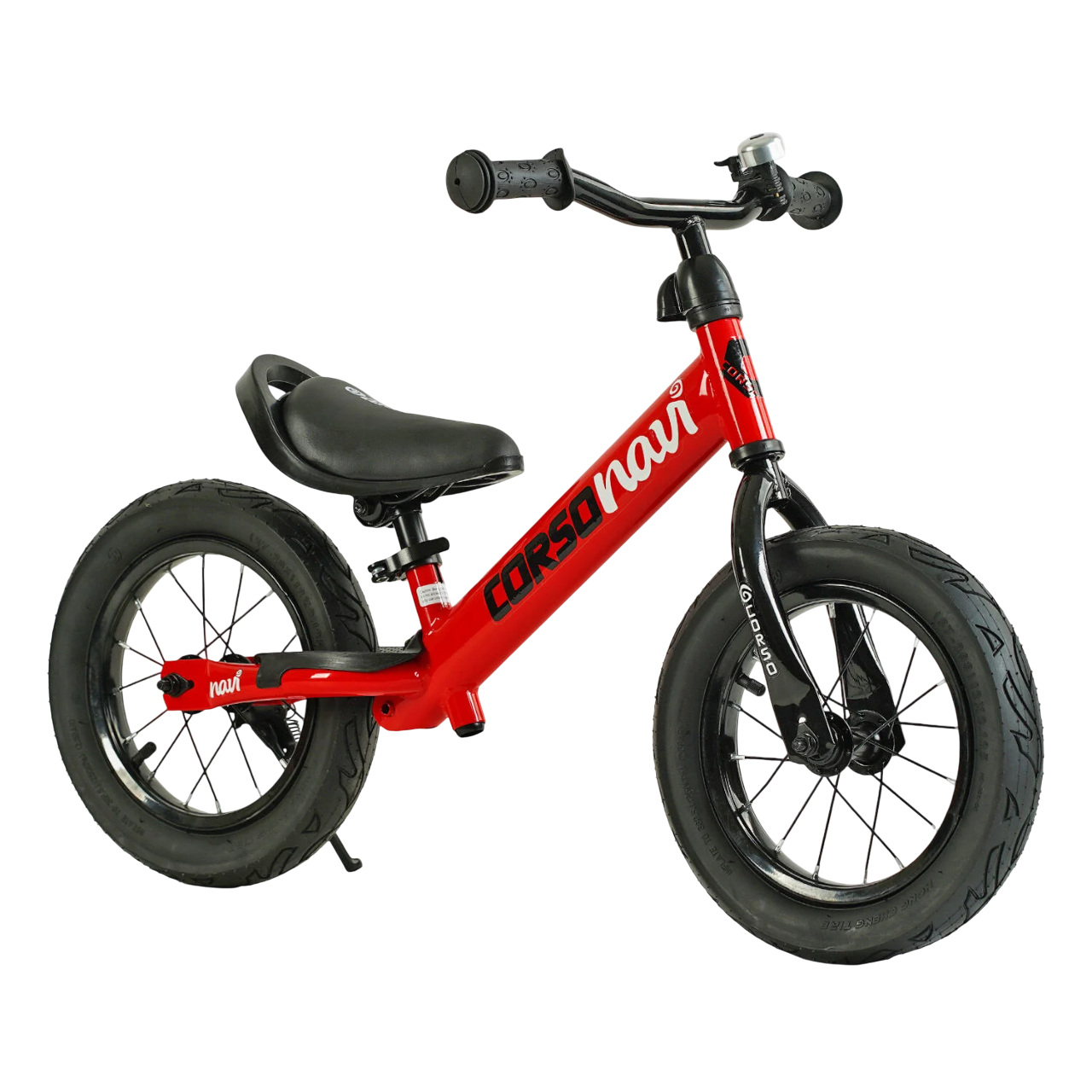 Велобег 12" Corsi Navi, стальная рама, надувные колеса, подножка, подставка для ног, колокольчик. Красный (147326)