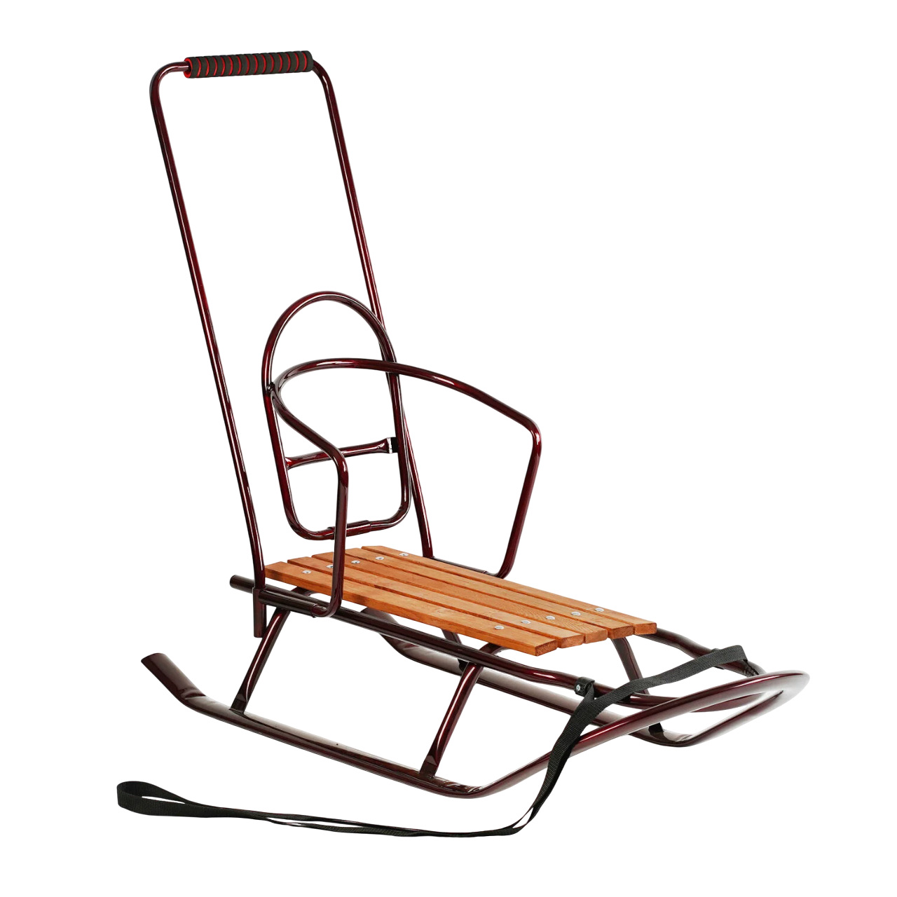 Детские санки, плоские полозья, с ручкой, съемная спинка. Бордовый (142738)