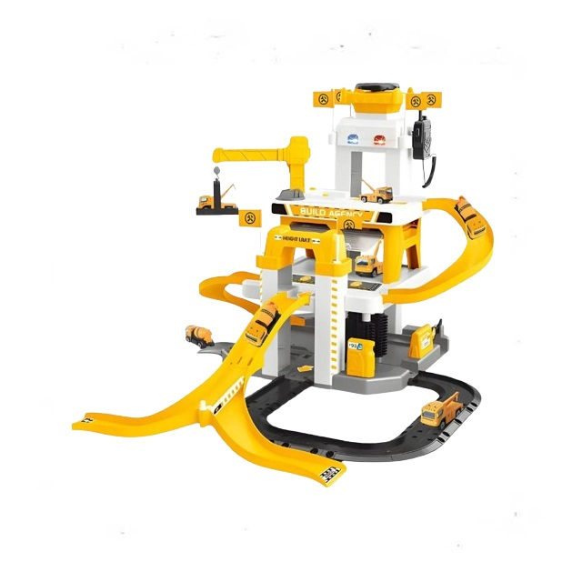 С этим набором ваш ребенок соберет целую трехэтажную строительную станцию, которая будет включать станцию обслуживания автомобилей, парковку и лифт, а также будет иметь трек с крутыми виражами, который будет объединять все этажи.