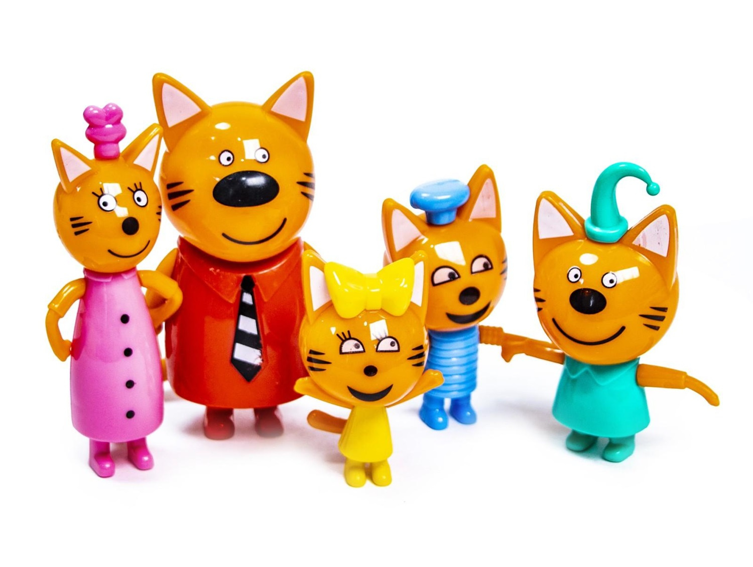 Забавные фигурки из мультика Три Кота. Коржик, Карамелька, Компот, Мама и Папа.