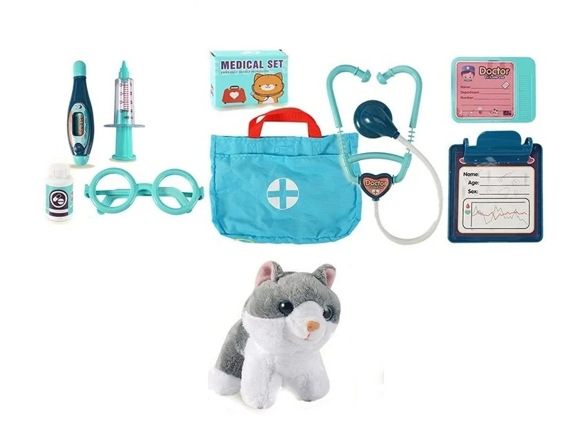 Игровой набор врача, собачка, аксессуары, сумка. Голубой (144810)
