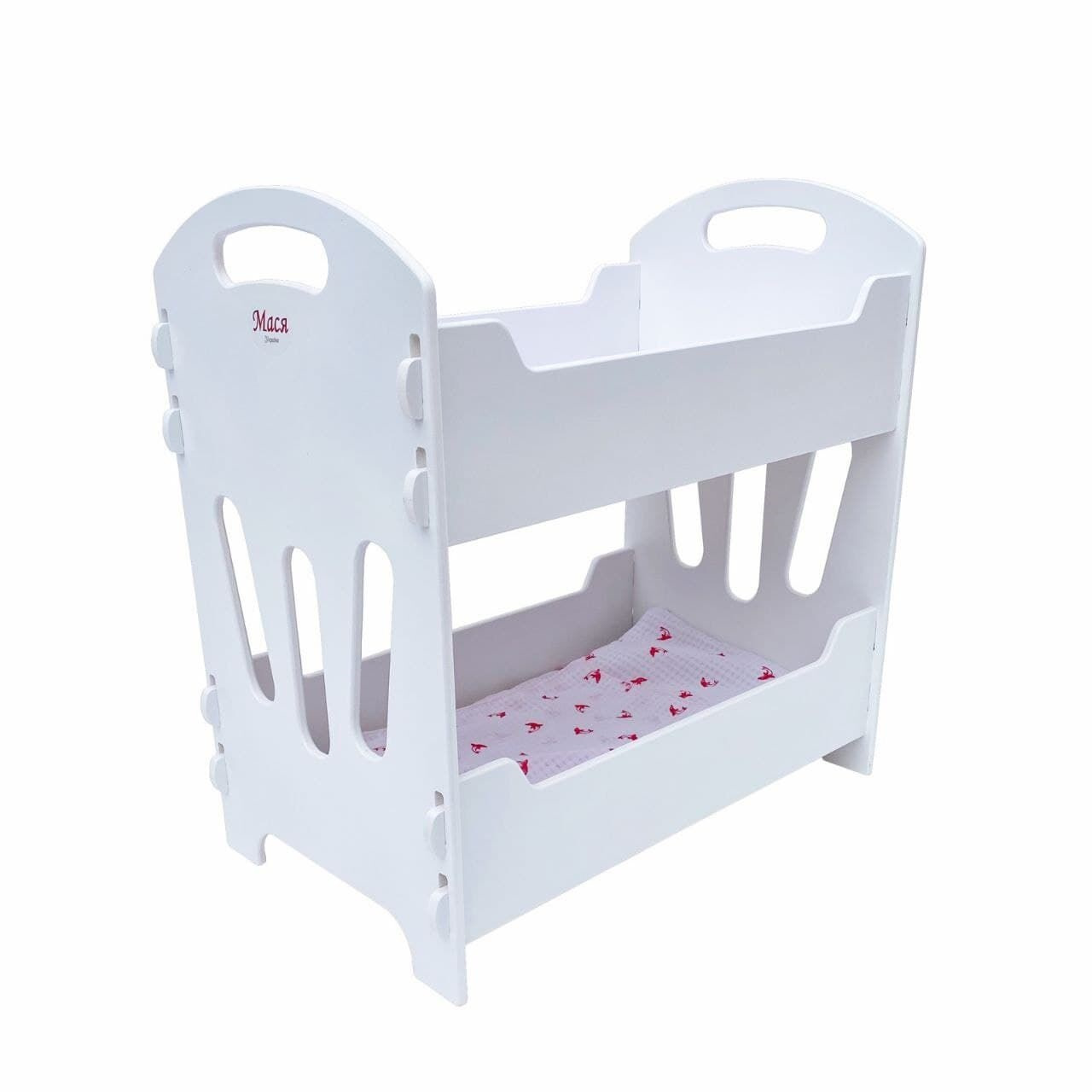 Игрушечная кровать для кукол Мася, двухъярусная, деревянная. Белый (109219)