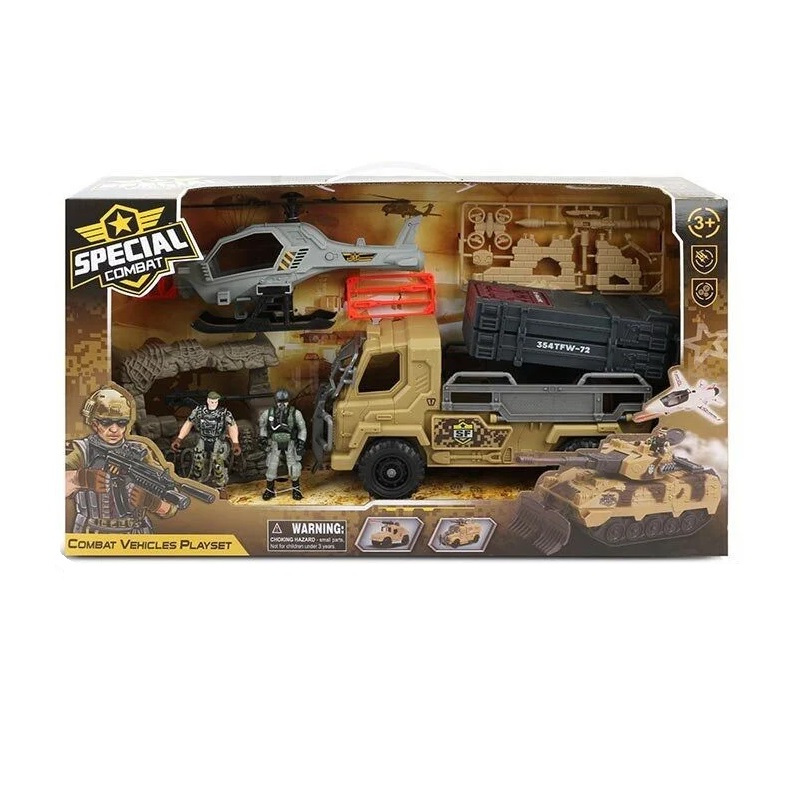 Идеальный набор для разыгрывания спасательных или защитных военных миссий как в сочетании с другими наборами, так и отдельно. Набор включает в себя полный комплект для полноценной игры – большую военную машину с артиллерийской установкой с запускателем снарядов, вертолет, военные укрытия, две фигурки военных с движущимися конечностями и разнообразное оружие. Такой набор надолго привлечет внимание ребенка и поможет погрузиться в интересную ролевую игру.