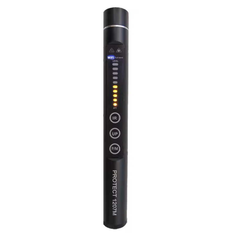 Профессиональный портативный детектор жучков и скрытых камер - антижучок Protect 1207M –   позволит найти беспроводной микрофон, жучок, скрытую камеру или устройства с магнитом как в помещении, так и за его пределами. К особенностям стоит отнести небольшой размер, автономное питание, широкий диапазон частот и возможность обнаружения скрытых видеокамер как при помощи детекции радиоизлучения, так и оптическим способом. Имея такой детектор жучков, отпадает надобность иметь 2 отдельных устройства для поиска проводных камер и для поиска беспроводных камер и жучков, так в этом детекторе эти 2 прибора совмещены.
