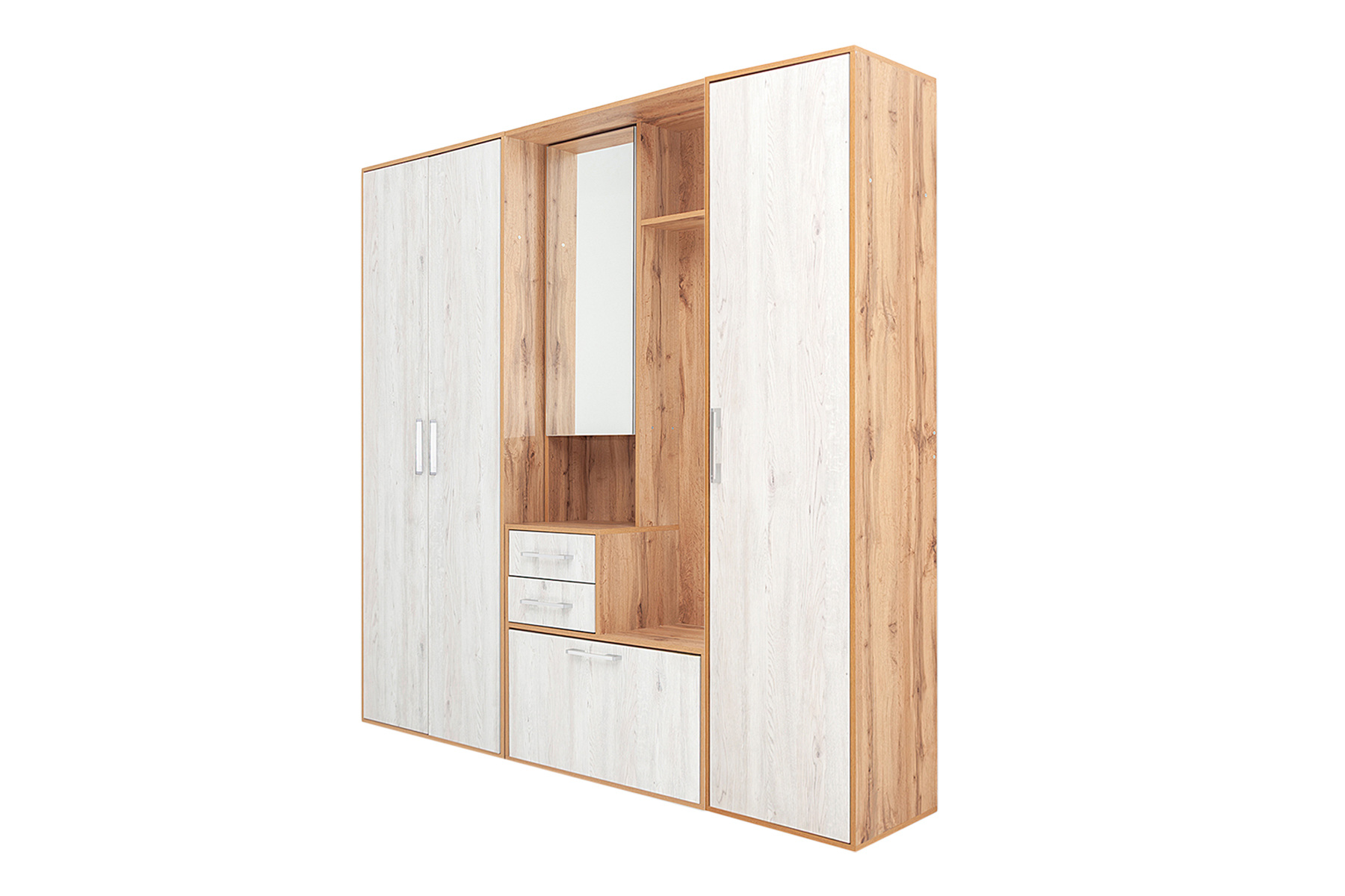 Опис Набір у передпокій FrostyPine (205 × 37.5 × 200 см, сіра фурнітура, дуб аппалачі і самоа димчастий)