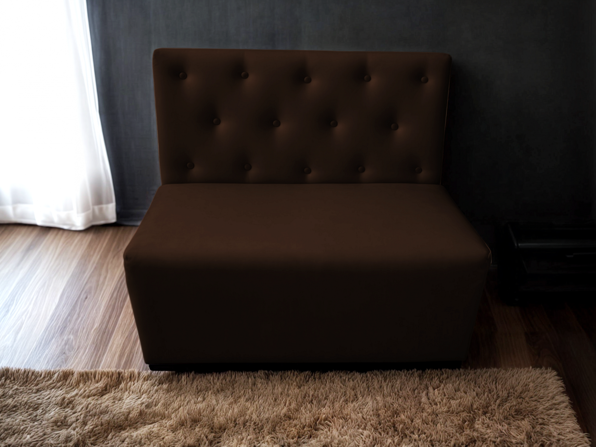 Диван для кафе Tobi Sho Бостон з високою спинкою та ґудзиками 1200x630x850, шкірзам Темний шоколад 22311