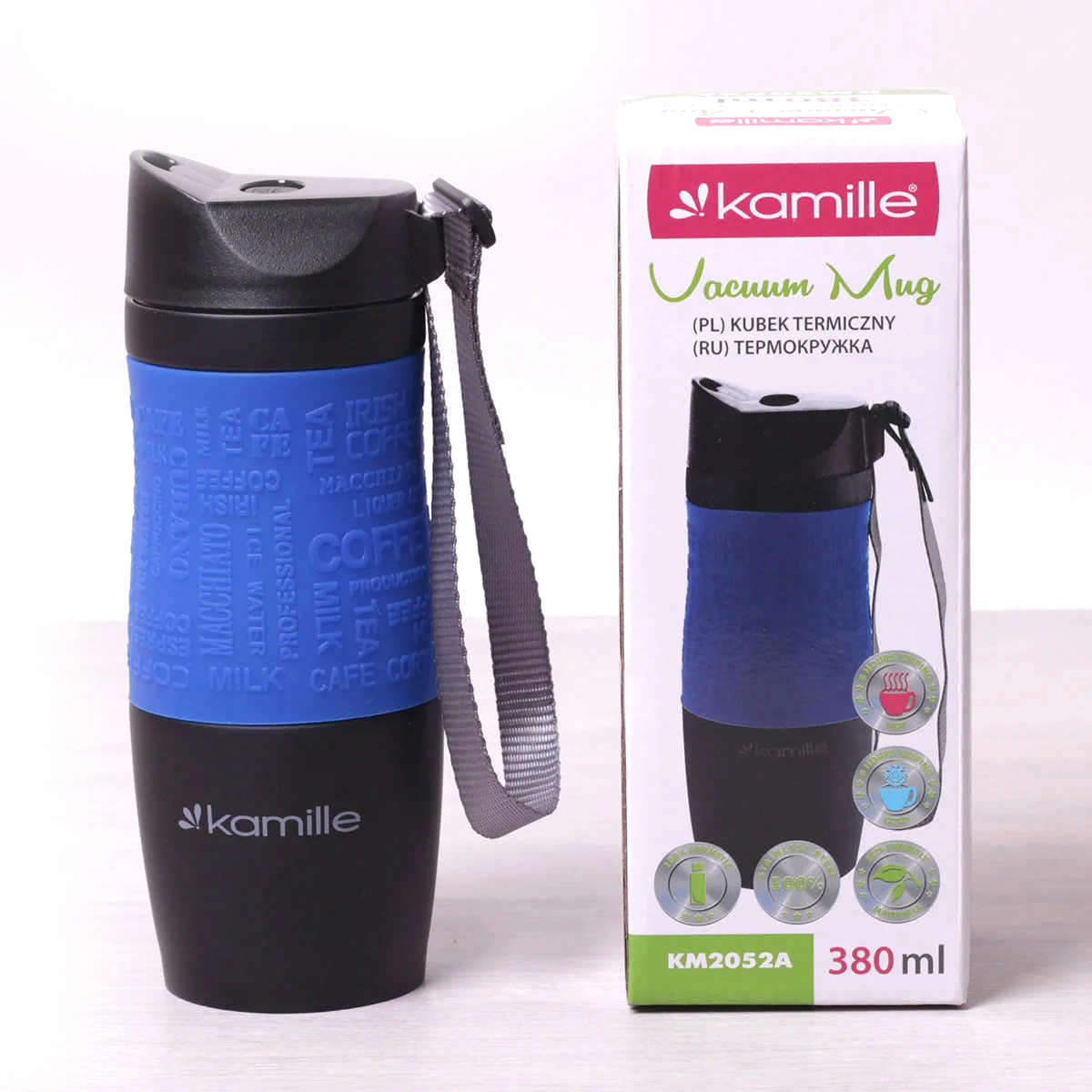 Термокухоль Kamille 380 мл з нержавіючої сталі Срібляста / Блакитна КМ-2052