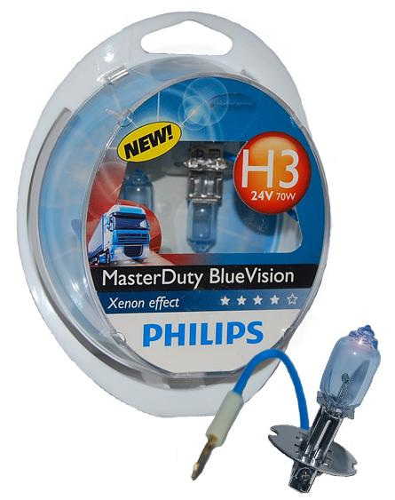 Опис Автолампа PHILIPS 13336MDBVS2 H3 70W 24V PK22s MasterDuty BlueVision