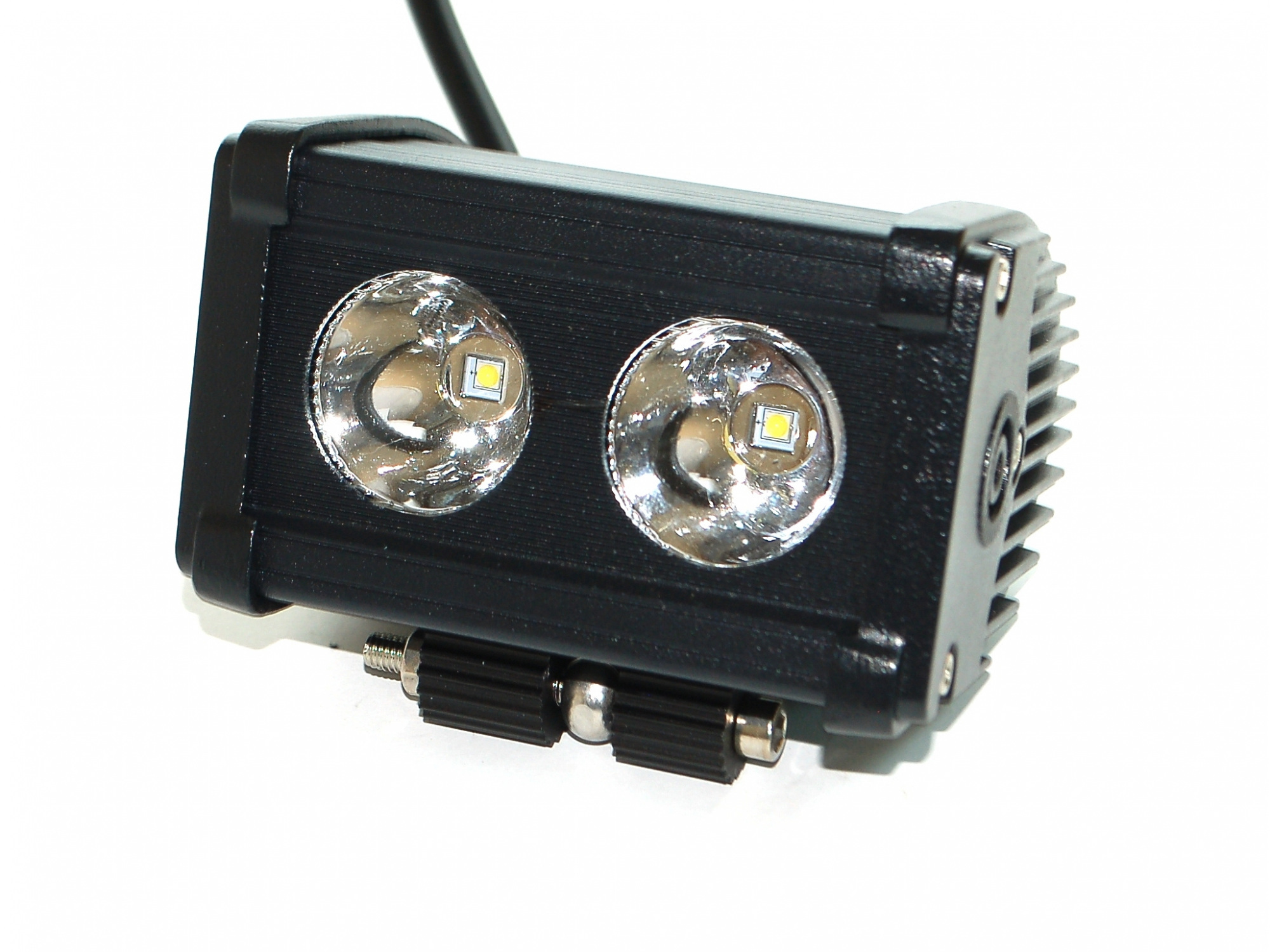 Тип: дальнего света Чип: CREE 10 Watt Количество диодов: 2 Мощность суммарная Вт: 20 Световой поток: 1500 lm Угол свечения: 15 Рабочее напряжение: 9-30V DC Цветовая температура: 6000K Степень влагозащиты: IP 67 Материал корпуса: Литой алюминий Размер Д*Ш*В мм: 112/85/95