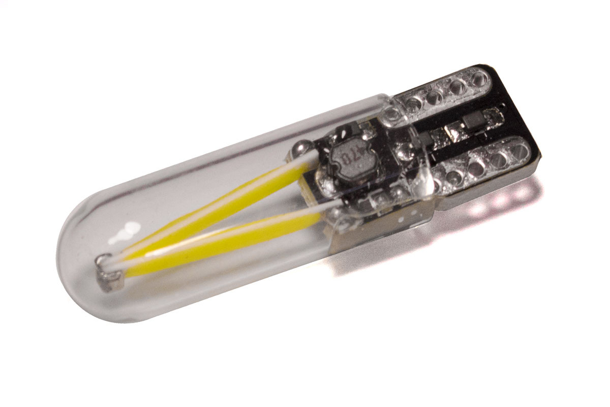 Светодиодная лампа StarLight T10 12V-24V 1W COB WHITE мультиполярная / стеклянная колба / печатная плата Black, имееет множественное применение как для освещения салона автомобиля, так и во внешних световых приборах.