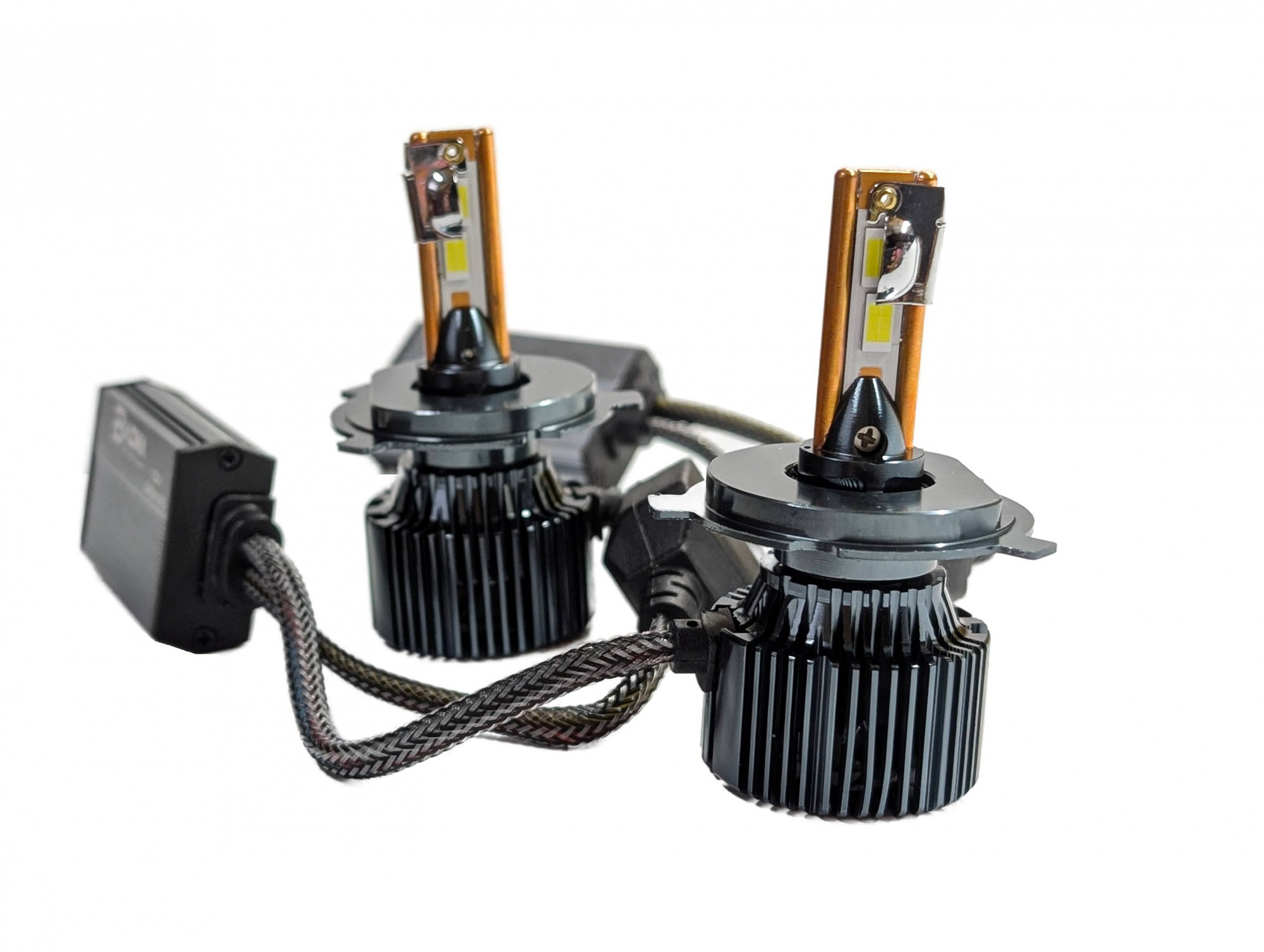 версия ламп StarLight ULTRA +200% – теперь еще более мощная и яркая! Мощность ламп теперь составляют 55 Ватт для 1 лампы, а световой поток увеличился до умопомрачительных показателей – 5500 люменов на одну лампу! Свет белый и плотный, без темных пятен и засветов за счет использования высокотемпературных чипов 3570 на новой очень тонкой медной подложке с уникальной системой отвода тепла к кулеру с помощью медных трубок. Кулер здесь тоже не прост, а на гидродинамических подшипниках 3010, исключающих вибрацию и неприятный звук во время работы. При этом лампы имеют четкую свето-теневую границу и находятся четко в фокусе, что исключает ослепление водителей встречного транспорта (при правильном монтаже и исправном корректоре фар). За счет конструкции лампы и мощного чипа, лампа не имеет засветов и темных пятен! Обратите внимание! Данные лампы не предназначены для установки в противотуманные фары, и производитель рекомендует использовать их только в линзированной оптике. Цоколь: H4(P43t). Мощность: 55W (110W комплект); Светодиод (чип): высокотемпературный 3570. Напряжение: 12V DC. Водонепроницаемость: IP 68; Материал: алюминиевый сплав 6063+медь; Световой поток: 5500 Lumen; Цветовая температура: 6000К. Охлаждение: вентилятор на гидродинамических подшипниках 3010 Время разжигания: 0,04 с Ресурс работы: более 30000 часов. CAN-BUS обманка: да (для авто с задержкой необходим дополнительный блок). Гарантия: 12 месяцев