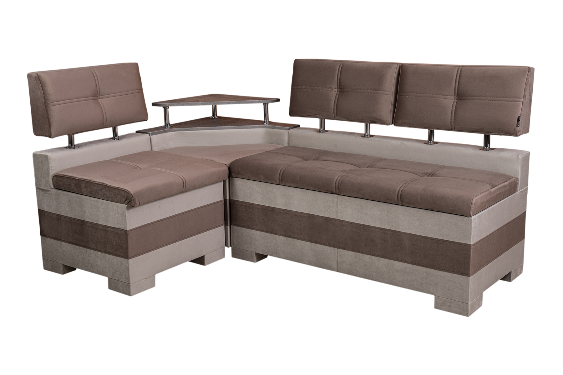 Куточок оснащений нішами для зберігання під обома сидіннями, що дозволяє зручно розмістити побутові речі. Модель підходить для щоденного використання в кухні або їдальні.