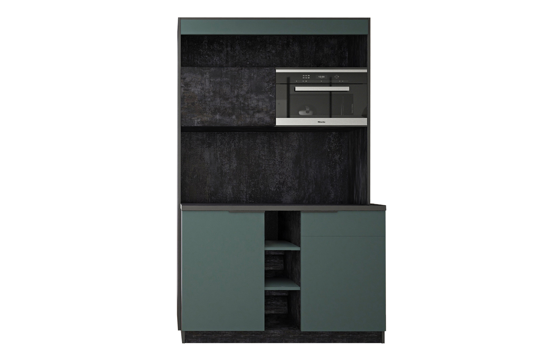 Модель має місце для вбудованої або окремої техніки, а також полиці для організації кухонного приладдя. Верхні, середні та нижні секції розташовані таким чином, щоб раціонально використовувати висоту гарнітура й створити більше корисного простору.