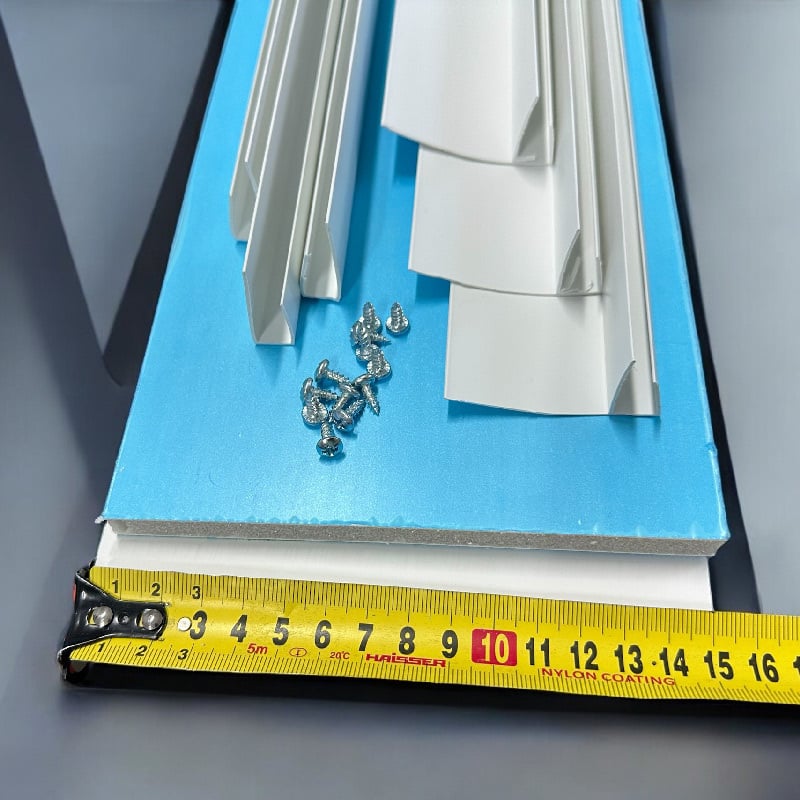 - Сендвіч-панель 10 мм, біла, ширина 150 мм, довжина в залежності типу вікна (див. "Типи готових комплектів на вікна та двері").