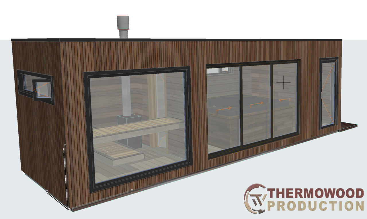Модульная сауна 7,5х2,7х2,7м с гидромассажным СПА бассейном (джакузи) от Thermowood Production