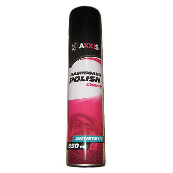 AXXIS Вишня VSB-036 650мл - Полироль пластика Полироль для пластиковых элементов салона с ароматом вишни. Обеспечивает отличную очистку и полировку поверхности. Устраняет посторонние запахи, в том числе самые стойкие. Имеет ярко выраженные антистатические свойства, благодаря чему на обработанных поверхностях не задерживается пыль, и они сохраняются в чистоте не протяжении длительного срока. Восстанавливает насыщенность и яркость цвета пластика, защищает его от выгорания. Преимущества: Средство легко наносится на поверхности, заполняя собой все неровности (текстура, царапины, трещины, стыки) и вытесняя из них пыль и грязь. Быстро и качественно устраняет пятна жира и масла, клейкие следы и табачный налёт. Придает поверхностям красивый ненавязчивый блеск. Устраняет любые, даже самые резкие посторонние запахи, наполняя салон приятным ароматом «клубника». Образует на поверхности прозрачную защитную плёнку, которая предотвращает оседание пыли, сохраняя поверхность в чистоте и минимизирует негативное влияние ультрафиолетового излучения. Благодаря форме аэрозольного баллончика средство экономно расходуется. Для достижения наилучших результатов рекомендуется использовать замшу или микрофибру.