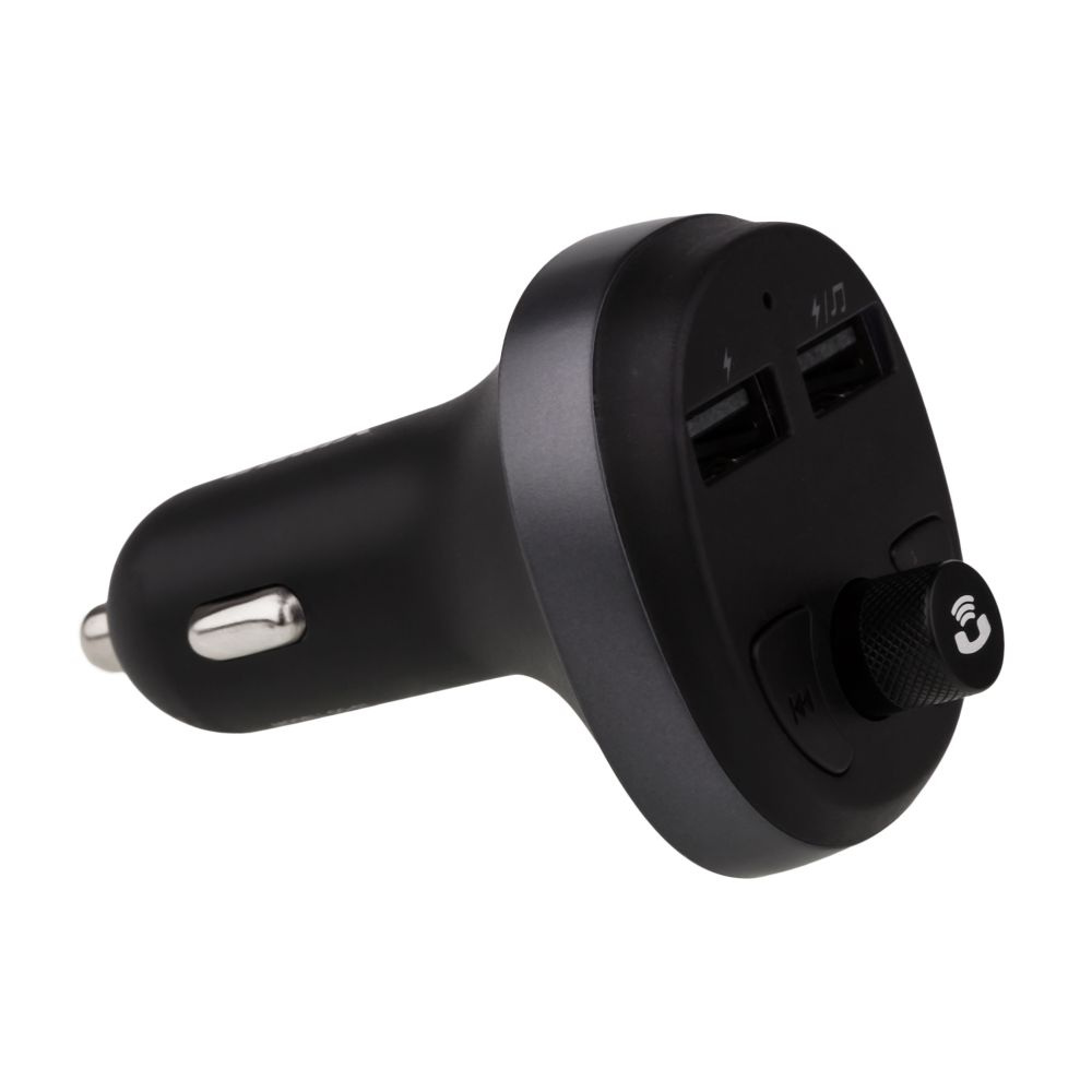 Устройство поможет прослушивать музыку со смартфона или носителей информации в салоне авто без проводов, все что необходимо для этого: штатный FM приемник и встроенная акустика. К тому же, аксессуар можно использовать для приема входящих звонков, благодаря имеющемуся микрофону. Модель реализована в стильном дизайне, изготовлена из высококачественного пластика, имеет надежную сборку. Весь функционал устройства представлен на его верхней панели, где размещены элементы управления, два порта USB, микрофон и LED дисплей, который отображает значение FM станций. USB порты предназначены для зарядки сторонних гаджетов, один из них поддерживает проигрывание музыкальных файлов с карты памяти.