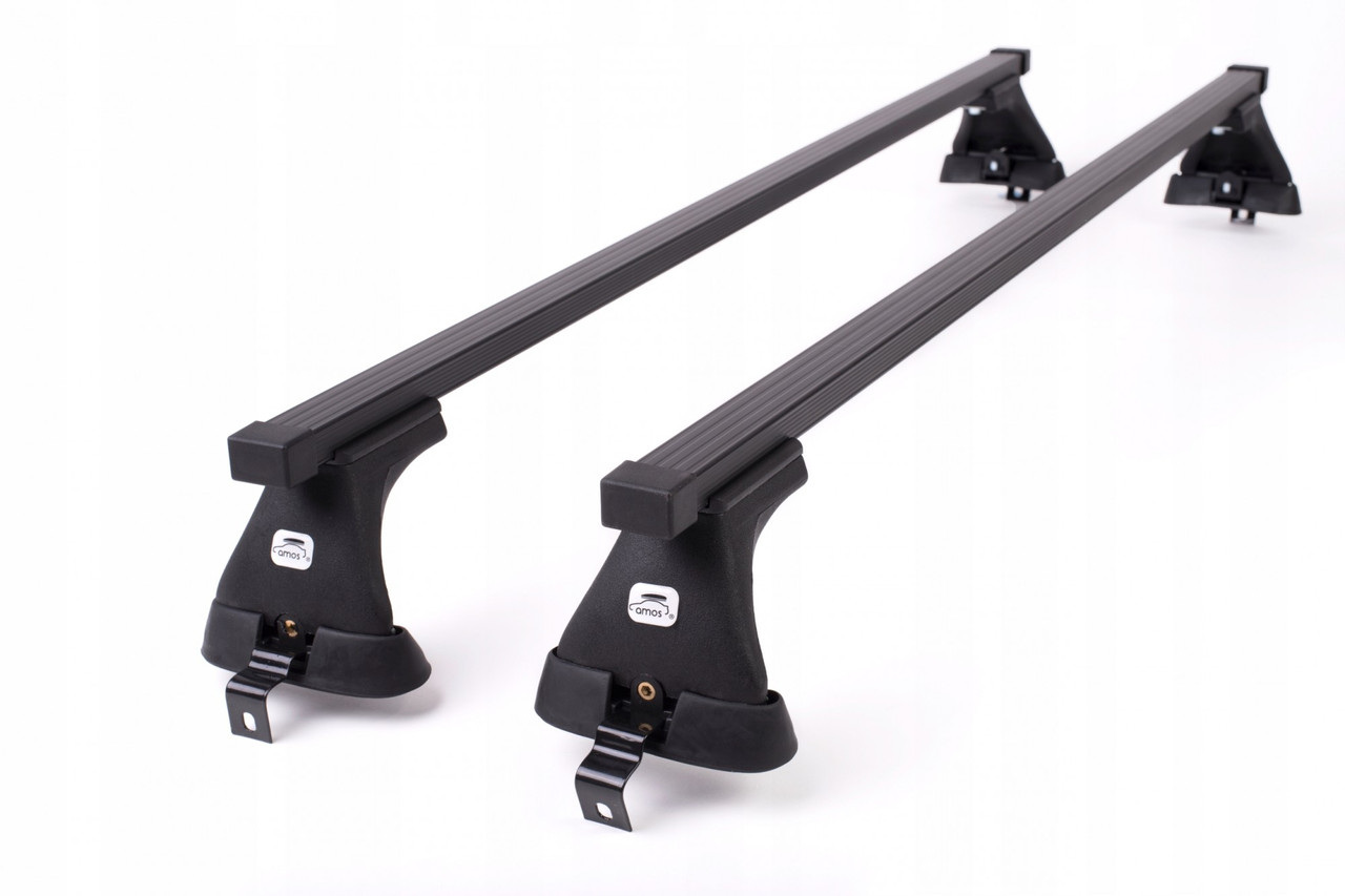 Имеет стальные поперечины. Крепкие крепления, соответствующего профилю из толстого пластика, оснащены резиновыми элементами для защиты краски вашего автомобиля. Укомплектована поперечными дугами прямоугольного профиля изготовленными из стали и защищенными пластиковым чехлом. Багажник идеально подходит для транспортировки разных вещей, таких как стремянки, строительные предметы или мебель. Преимуществом багажника Amos является возможность установки дополнительных аксессуаров: багажников, держателей для велосипедов, лыж, лодок или каяков.
