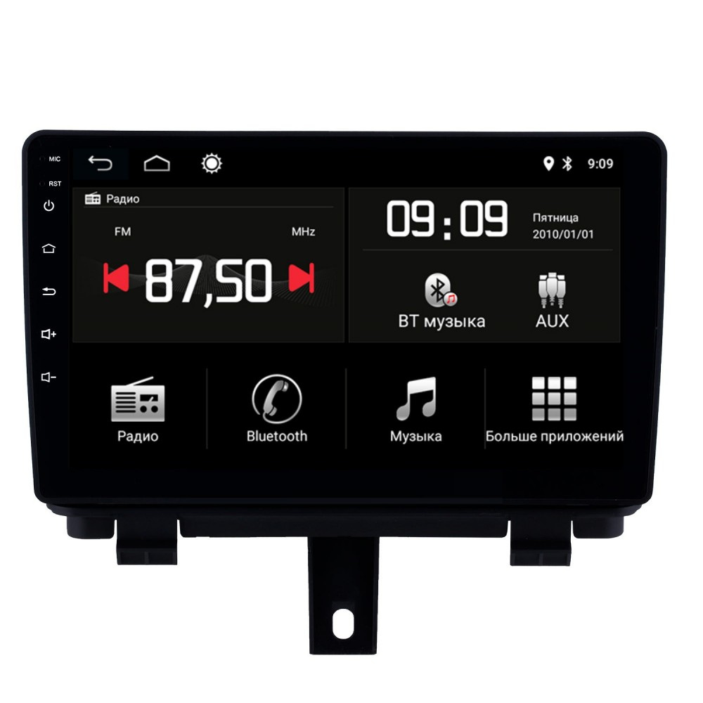 Сенсорный 9" дюймовый экран QLED 2. 5D разрешением 1280x720. Ёмкостный морозостойкий сенсор, мультитач до 5 касаний (например масштабирование и вращение карты навигации 2-мя пальцами), отзывчивое и легкое касание - так же, как на современных смартфонах и планшетах. Экран позволяет воспроизводить видео в очень хорошем качестве, яркие, сочные цвета. Большие углы обзора экрана позволяют наслаждаться просмотром с любого сидения вашего автомобиля. Предусмотрено деление экрана на две части, что дает возможность одновременно использовать два приложения, например, навигация и радио.