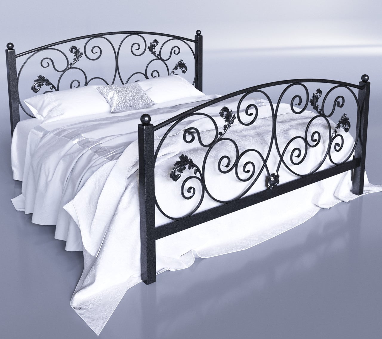 Двоспальне ліжко Магнолія Tenero металеве з наголов'ям і зношеним прикрашеними ажурними візерунками 140х190
