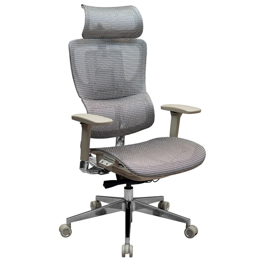Офісне крісло Ерготекс Richman Сіре Алюм з регульованим підголівником підлокітниками спинкою
