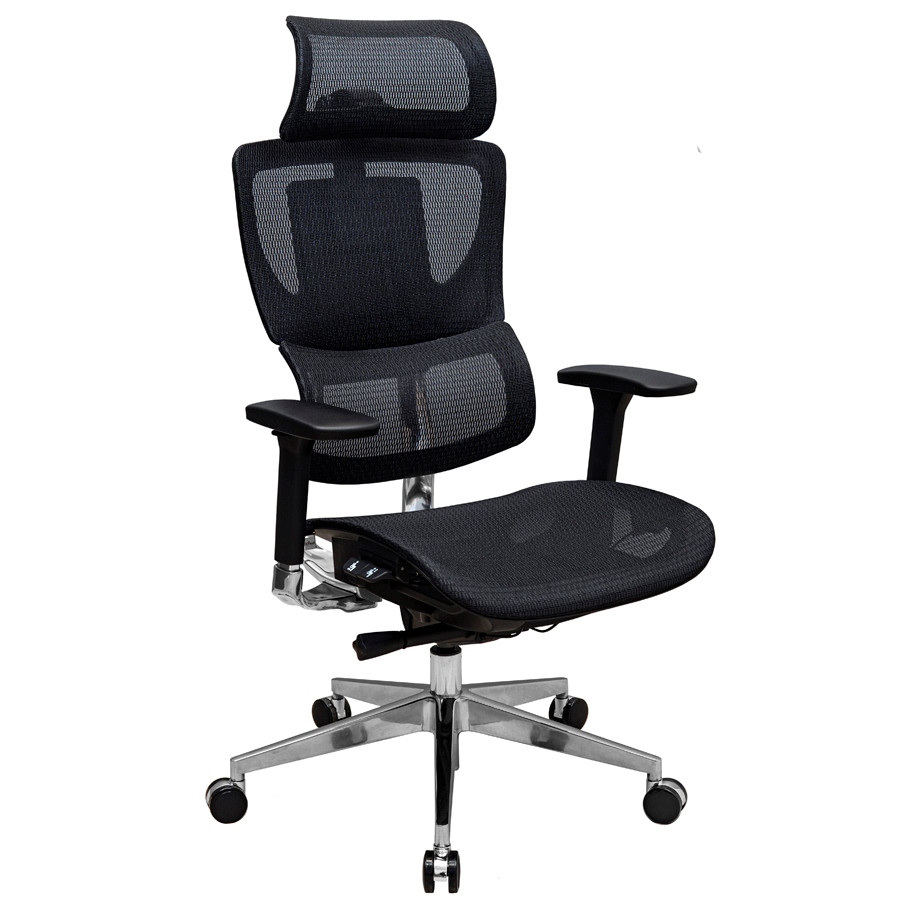 Офісне крісло Ерготекс Richman Чорне Алюм з регульованим підголівником підлокітниками спинкою