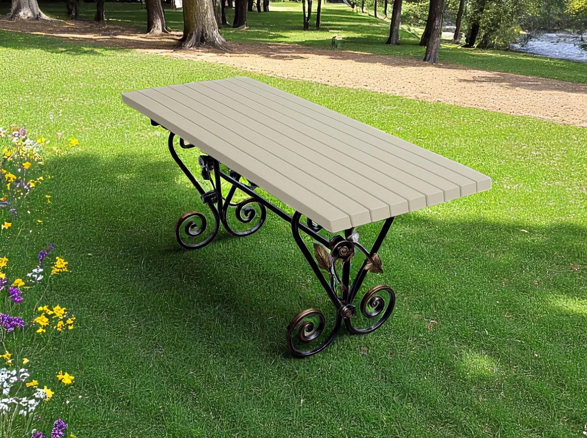 Стіл кований садовий Камелія для дачі, тераси, альтанки 2000х700х800 мм, колір Слонова кістка