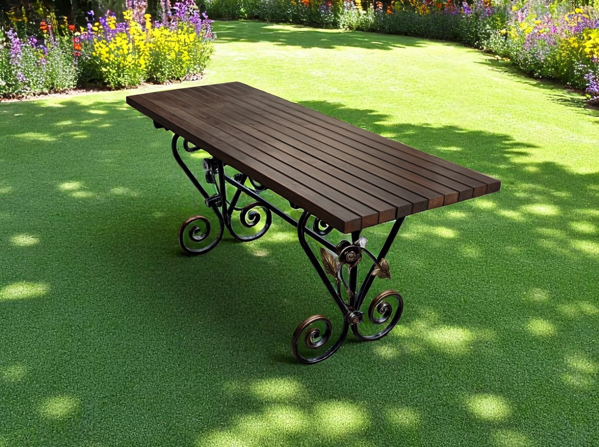 Стіл кований садовий Камелія для дачі, тераси, альтанки 2000х700х800 мм, колір Махагоній
