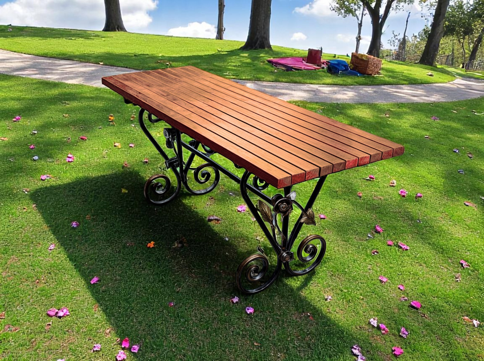 Стіл кований садовий Камелія для дачі, тераси, альтанки 2000х700х800 мм, колір Макасар