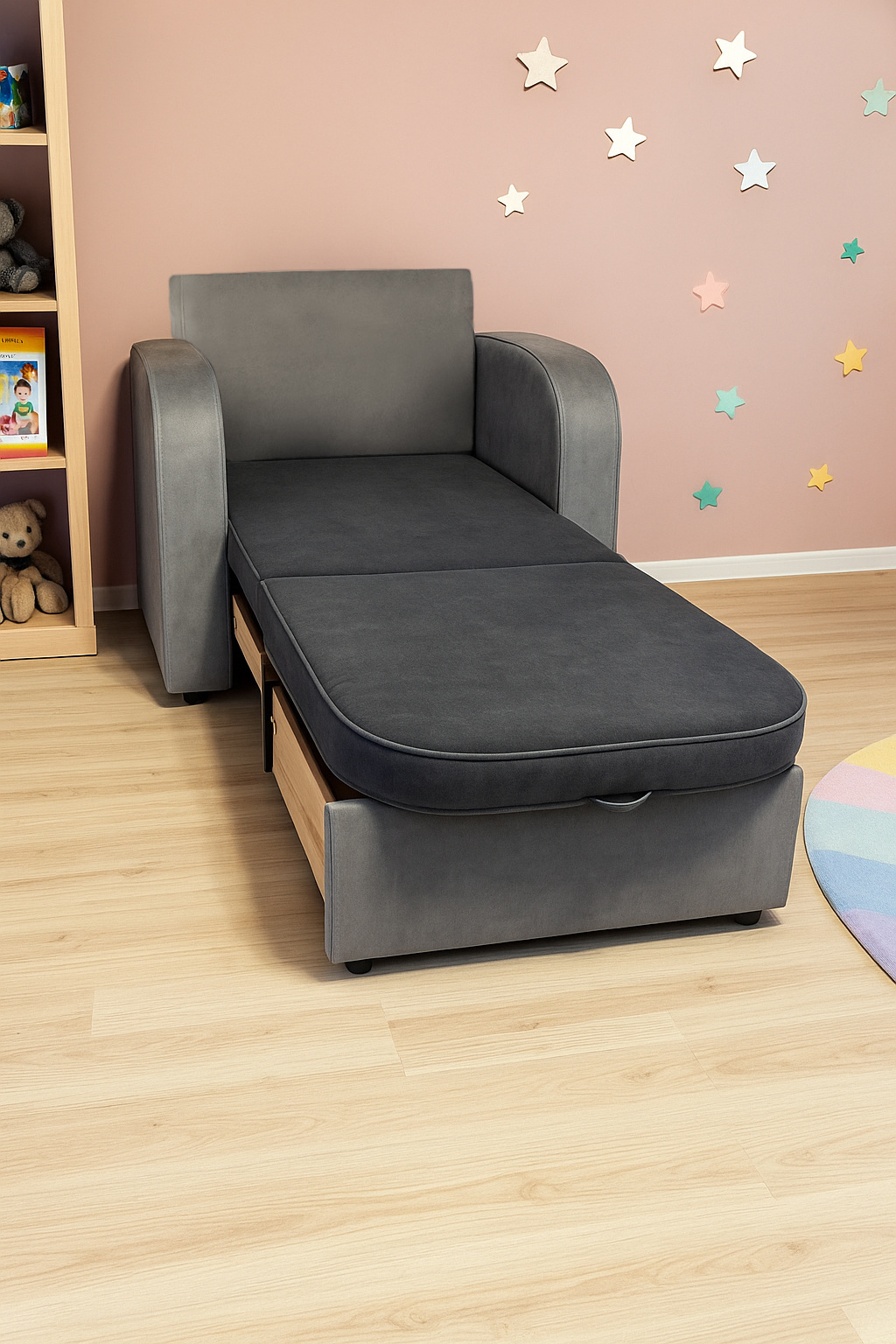 Крісло м'яке розкладне Tobi Sho Дрім для підлітків велюр Mars Сірий/14, 940х850х730 мм