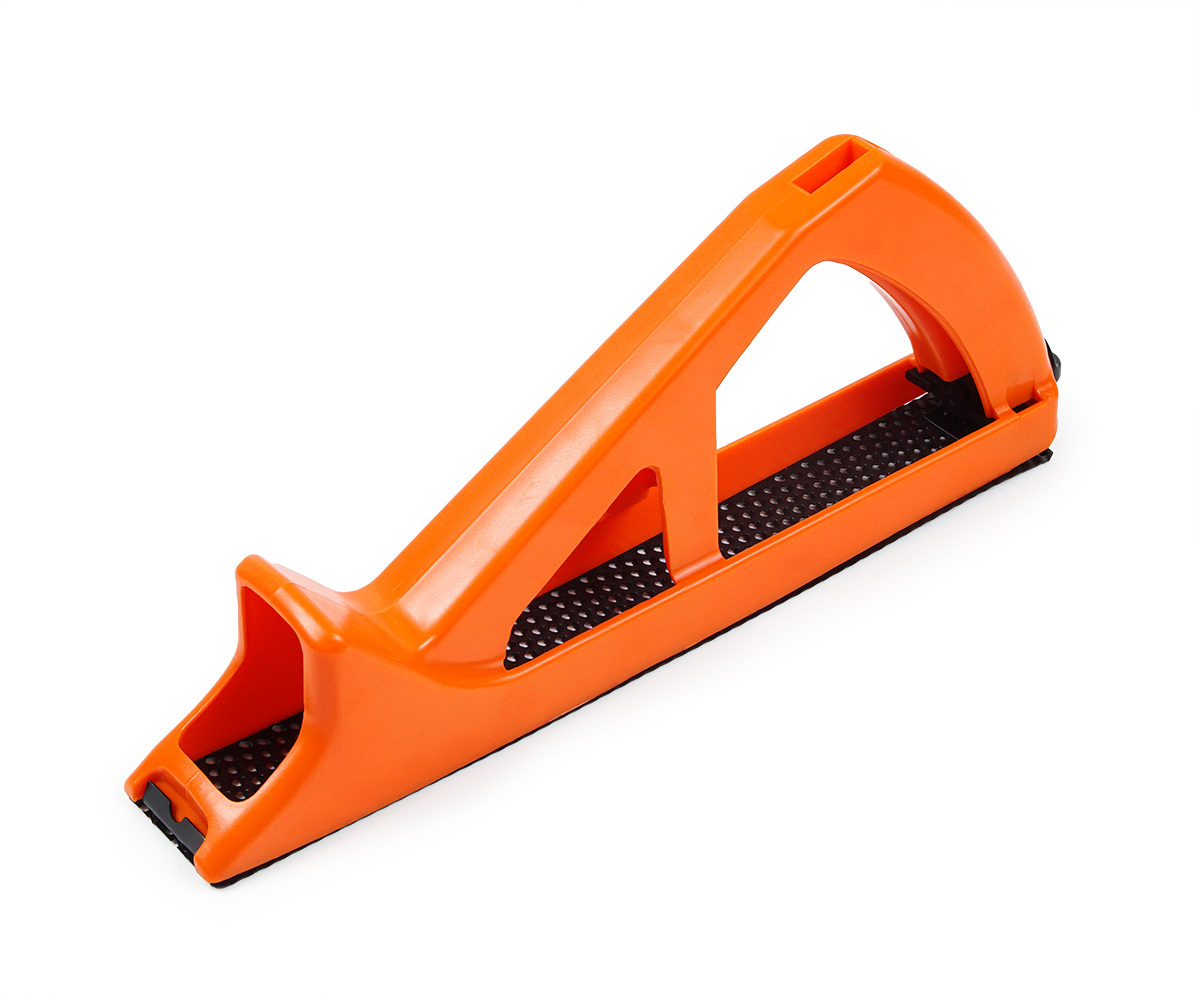 Легкий і ударостійкий корпус виготовлений з високоякісної пластмаси, забезпечуючи довговічність і зручність використання. Робоче полотно розміром 250 мм на 40 мм виготовлено з високовуглецевої сталі з твердістю 45-48 HRC і покрито порошковою фарбою для збільшення терміну служби. Монолітне лезо з оксамитовою насічкою дає змогу досягати ідеально рівної та гладкої поверхні.