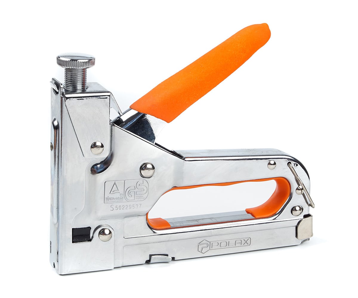 Степлер Polax CHROME - хромований степлер для побутового та професійного призначення. Застосовується з П-подібними скобами для кріплення матеріалів та деталей до поверхонь з дерева, ДВП, ДСП, гіпсокартону, пластику.