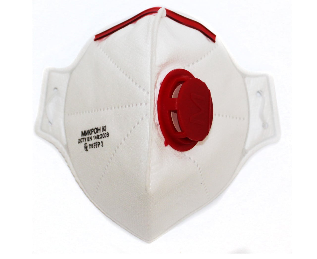 Респіратор "Мікрон" червоний (три шари захисту) - одноразовий чашоподібний респіратор із трьома шарами захисту. Використовується для захисту органів дихання та слизових оболонок очей, носа, ротової порожнини від впливу різних видів пилу, дрібних частинок будівельного сміття, рідких аерозолів та інших забруднень повітря. Може використовуватися з іншими засобами індивідуального захисту, не сковуючи рухи та не ускладнюючи видимість.
