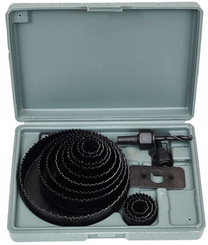 Набір фрез по дереву Polax 19-127 мм 12 шт - оснащення корончастої форми для кільцевого свердління за допомогою електроінструментів в дереві, гіпсокартоні, ДСП, пластику, фанері. у крихкому матеріалі Роботи виконуються швидко, точно, якісно та безшумно Отримані отвори використовують для монтажу елементів електропроводки, установки вентиляційного обладнання, світильників та декоративних прикрас інтер'єру.