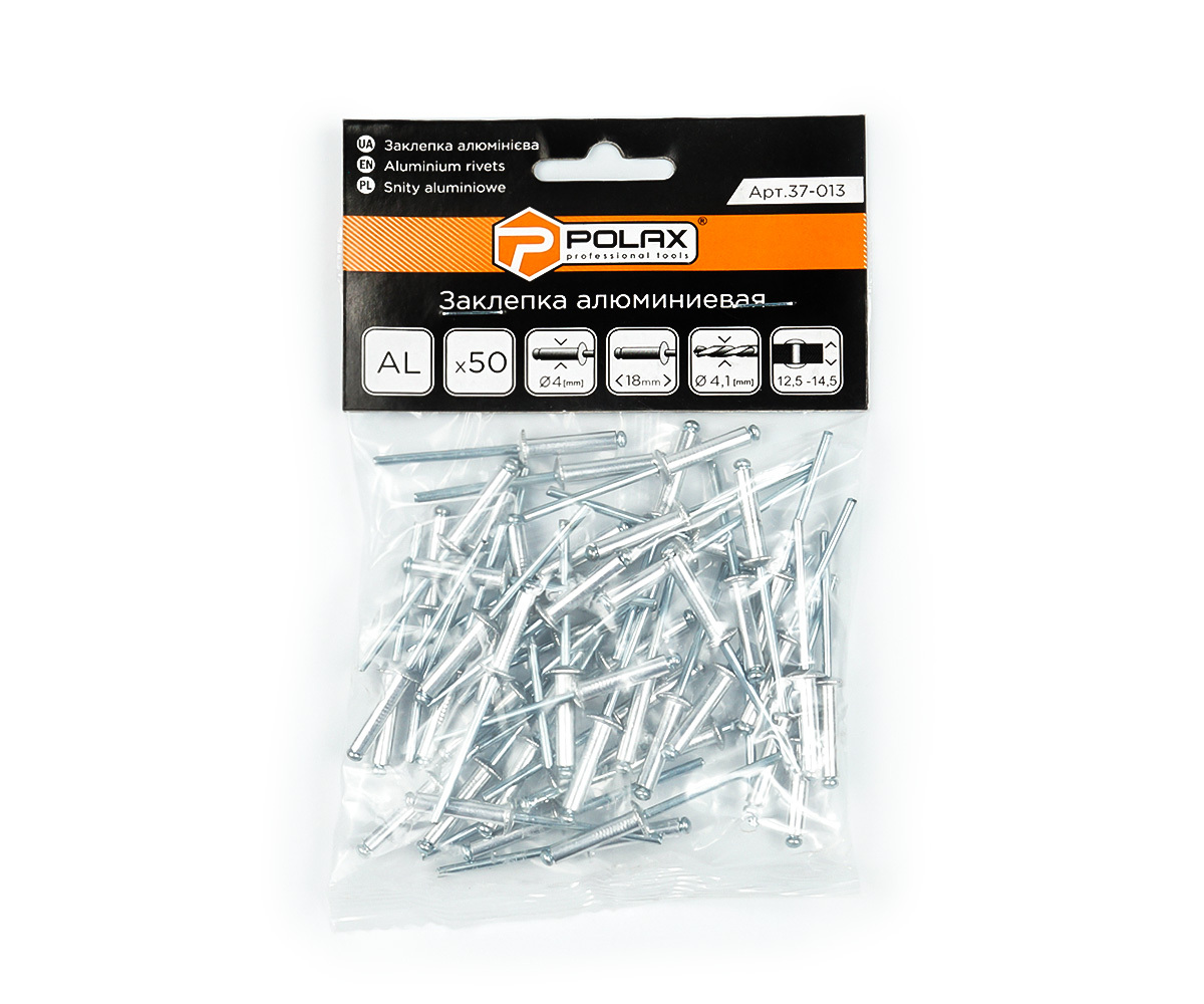 Опис Заклепки витяжні алюмінієві 4 х 18 мм Polax (37-013)