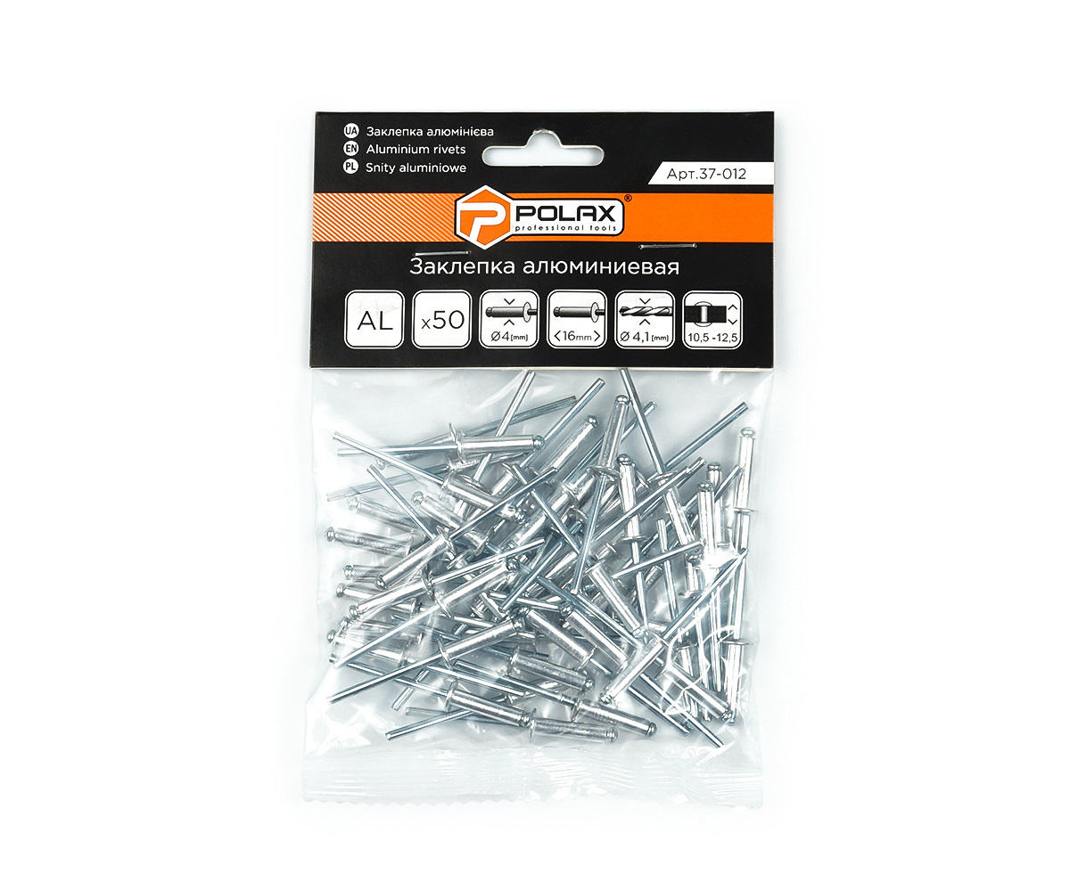 Опис Заклепки витяжні алюмінієві 4 х 16 мм Polax (37-012)
