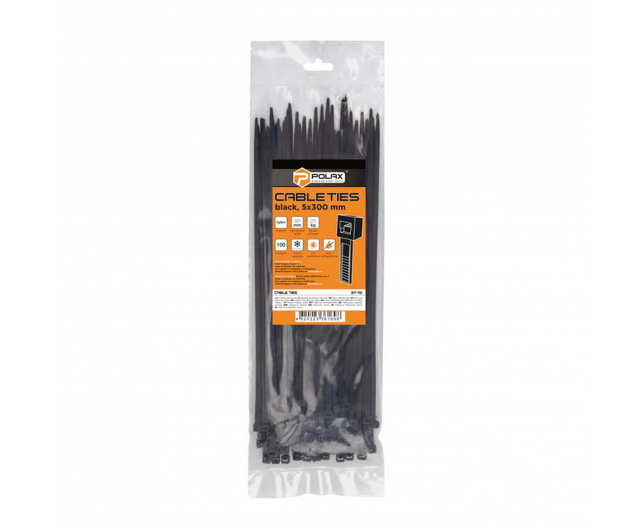 Хомут пластиковий (стяжка) Polax нейлонова 5 х 300мм чорний 100 шт (37-110)