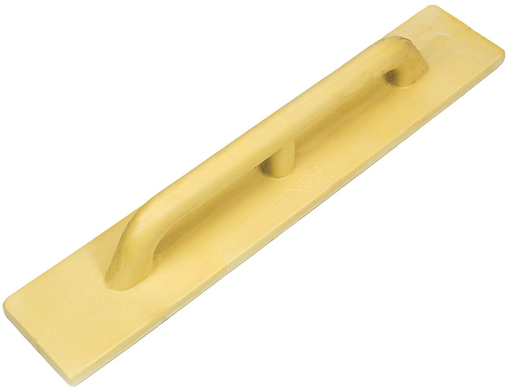 Терка поліуретанова Polax для вирівнювання та вигладжування штукатурки. Ручний будівельний інструмент шліфувального типу. Терка виготовлена із щільного поліуретану, дуже легка, а тому досить зручна в експлуатації, має рукоятку круглого перерізу, сама поверхня шорсткого типу, стійка до стирання, що значно подовжує термін її служби. Поліуретанова терка використовується для виконання різних штукатурних робіт. За допомогою терки роблять остаточне доведення та затирання оштукатуреної раніше поверхні, широко використовують для затирання та шліфування поверхонь при обробних та штукатурних роботах. Тертка поліуретанова Polax 110 x 600 мм (200-006)