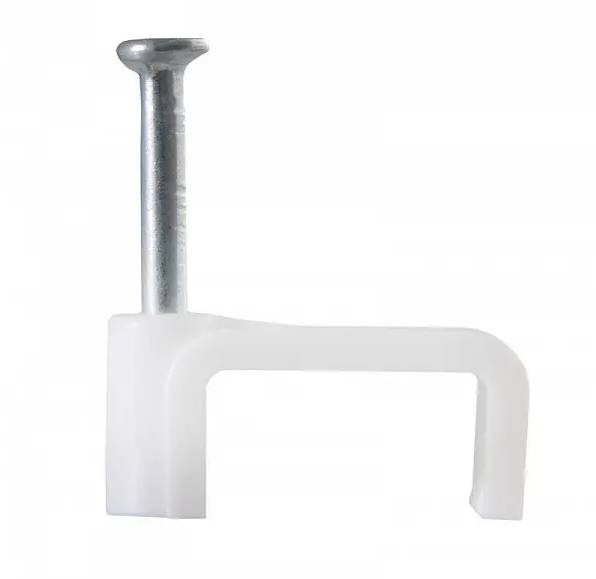 Опис Скоба кабельна Polax плоска 12х5 мм з цвяхом, біла 100 шт. (37-134)