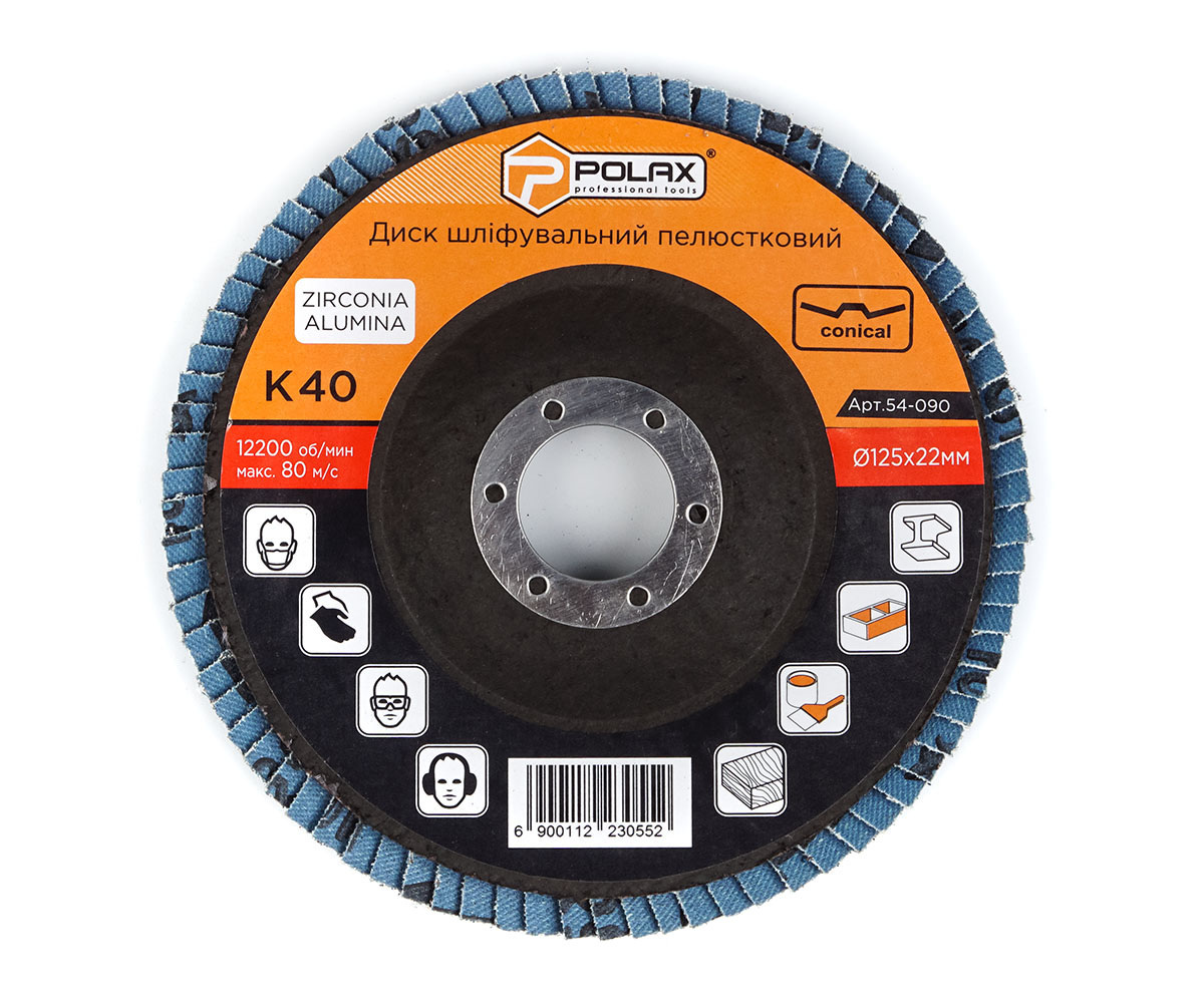 Опис Коло (диск) Polax шліфувальний пелюстковий для УШМ (болгарки) оксид цирконію 125*28 мм зерно K40 (54-090)